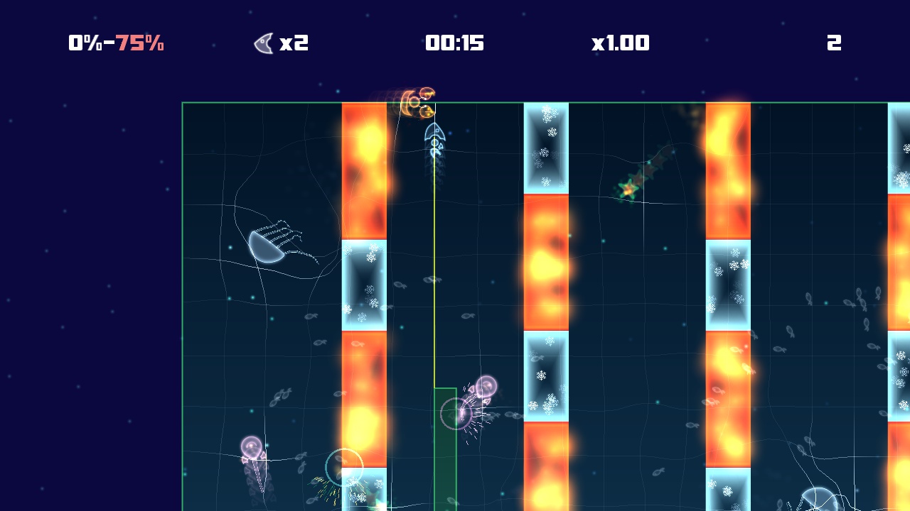 LightFish is a highly addictive arcade game, where the user controls a small fish who lives in the abyssal deeps of the ocean... surrounded by deadly creatures. His objective is to destroy all the monsters who inhabit those dangerous zones by drawing lines onto unexplored territory. However, any enemy who manages to touch the Lightfish will kill him instantly!