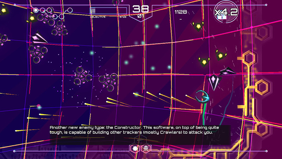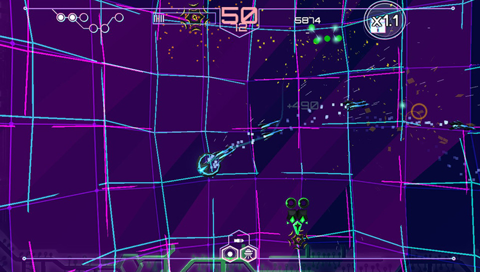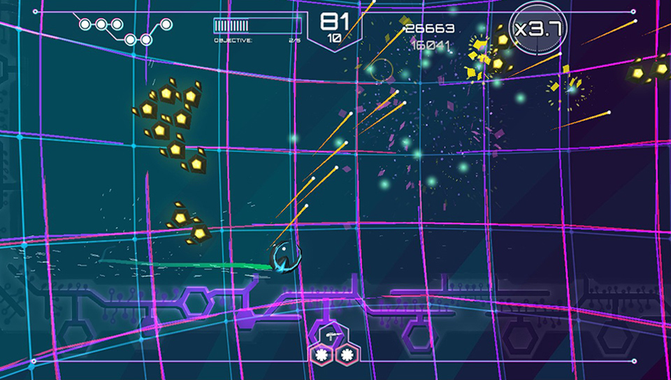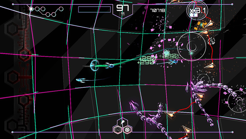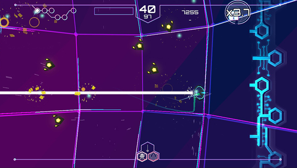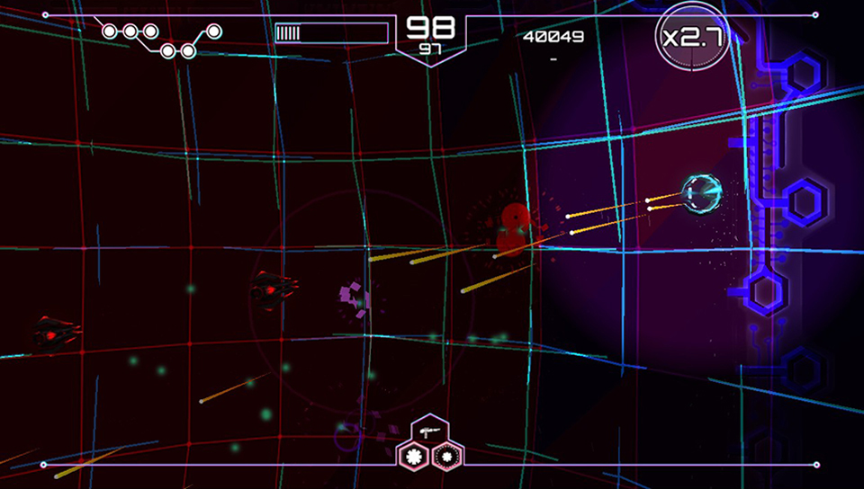 Tachyon Project is a dual stick shooter where we've taken concepts from the classic shoot'em up genre and tried to adapt them to the dual stick shooter genre. In Tachyon Project the player will find the gameplay versatility and speed traditional to dual stick shooters but with the variability in weapons and enemies that you usually find in shoot'em ups. The variety of weapons, secondary weapons and perks allow for hundreds of combinations for your ship. That, along with the number of different enemy types provides a lot of gameplay variety that is something quite unique in the genre.